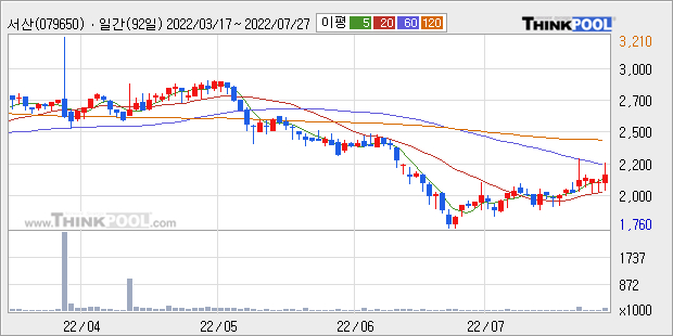 서산은 2021년 매출액 561억원과 영업이익 45억원을 기록했다. 전년대비 매출은 41.7% 상승했고, 영업이익은 흑자전환했다. 이 회사의 매출액 증감률과 영업이익 증감률은 각각 코스닥 상위 17%, 상위 17%에 해당된다.