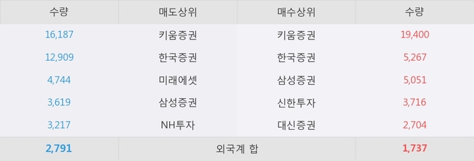 이 시각 주요 거래원은 삼성증권, 키움증권, 한국증권 등이 매수 상위 창구에 자리하고 있다.