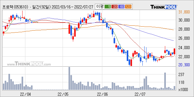 프로텍은 2021년 매출액 1740억원과 영업이익 503억원을 기록했다. 전년대비 매출은 101.2%, 영업이익은 226.8% 각각 상승했다. 이 회사의 매출액 증감률과 영업이익 증감률은 각각 코스닥 상위 5%, 상위 12%에 해당된다.