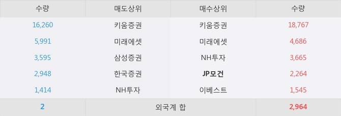 거래원 동향은 JP모건, 미래에셋, NH투자 등이 매수 상위 목록에 나타나고 있다.