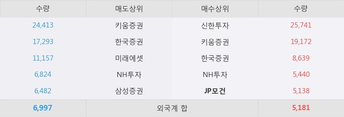 거래원 동향은 JP모건, NH투자가 매수 상위 목록에 나타나고 있다.