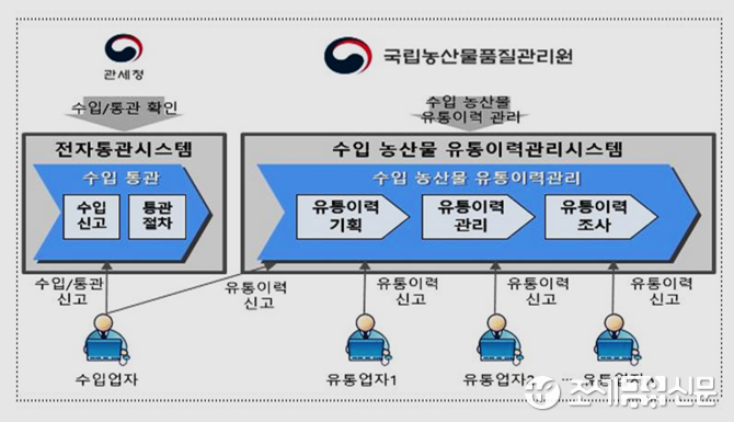 수입농산물 유통이력관리는 외국산 농산물이 국내산으로 둔갑하는 것을 막기 위해 수입상, 도매상, 소매상 등 유통단계별로 수입 물품의 거래 내역을 신고하게 해 유통 이력을 관리하는 제도다.