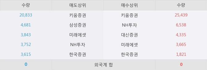 아직까지 외국계 증권사 창구를 통한 매매는 발생하지 않고 있다. 그리고 이 시간 NH투자가 매수창구상위에 올라있는 종목은 이 종목 이외에도 승일, IBKS제12호스팩 등이 있다.