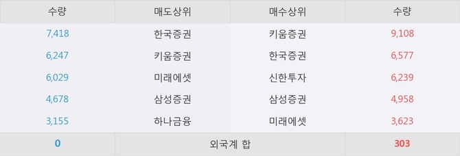 거래원 동향은 삼성증권, 미래에셋 등이 매수 상위 목록에 나타나고 있다.