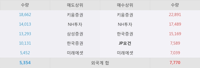 거래원 동향은 JP모건, NH투자, 미래에셋 등이 매수 상위 목록에 나타나고 있다.
