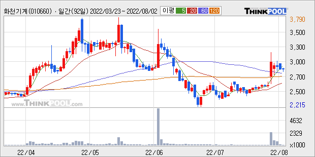 화천기계의 2021년 매출액은 전년대비 28.6% 늘어난 1759억원이고, 영업이익은 흑자전환해서 13억원을 기록했다. 이 회사의 매출액 증감률과 영업이익 증감률은 각각 코스피 상위 24%, 상위 23%에 해당된다.