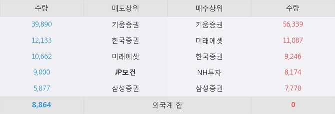 거래원 동향은 미래에셋, NH투자, 삼성증권 등이 매수 상위 목록에 나타나고 있다. 한편, 매도 창구 상위에는 JP모건이 눈에 띄고 있다.