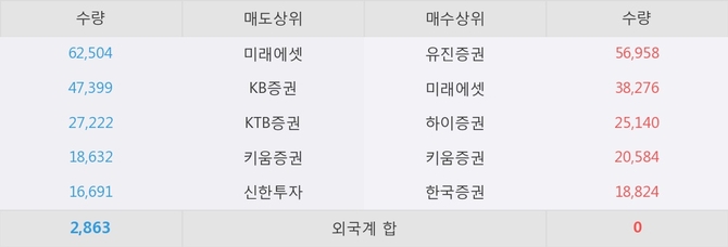 이 시각 주요 거래원은 미래에셋, KB증권, KTB증권 등이 매도 상위 창구에 자리하고 있다.
