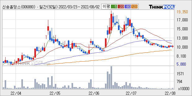 신송홀딩스의 지난 3년 동안 법인세 납부액 추이를 보면 각각 -16억원, 14억원, 22억원으로 매년 상승세를 기록하고 있다.