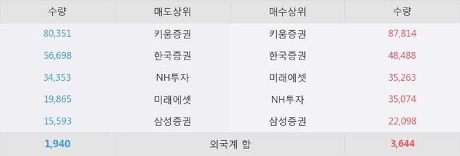 거래원 동향은 미래에셋, NH투자, 삼성증권 등이 매수 상위 목록에 나타나고 있다.