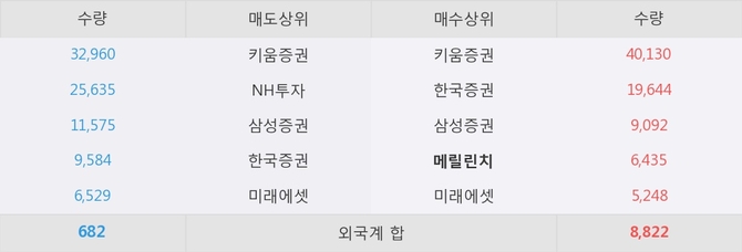 거래원 동향은 메릴린치, 삼성증권, 미래에셋 등이 매수 상위 목록에 나타나고 있다.