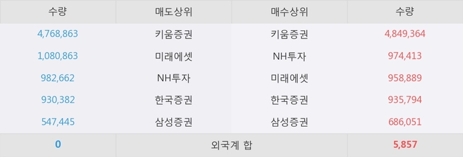 거래원 동향은 NH투자, 미래에셋, 삼성증권 등이 매수 상위 목록에 나타나고 있다.