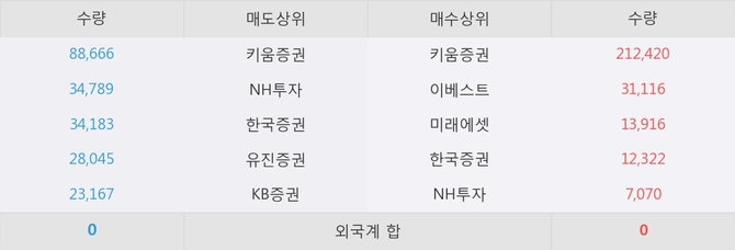아직까지 외국계 증권사 창구를 통한 매매는 발생하지 않고 있다. 그리고 이 시간 이베스트가 매수창구상위에 올라있는 종목은 이 종목 이외에도 해태제과식품, KBSTAR 코스닥150 등이 있다.