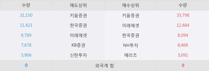 거래원 동향은 미래에셋, NH투자, 메리츠 등이 매수 상위 목록에 나타나고 있다.