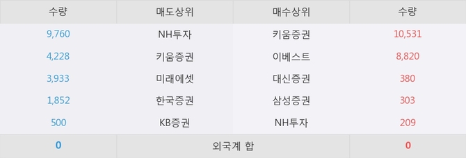 아직까지 외국계 증권사 창구를 통한 매매는 발생하지 않고 있다. 그리고 이 시간 이베스트가 매수창구상위에 올라있는 종목은 이 종목 이외에도 현대로템, 한일단조 등이 있다.