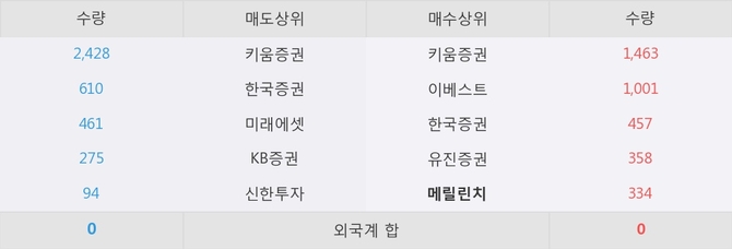 메릴린치가 매수상위 창구 5위를 기록중이고, 그 외에 키움증권, 이베스트 등이 매수 창구 상위에 위치하고 있다.