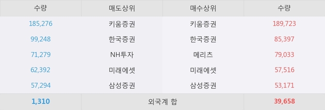 거래원 동향은 메리츠, 미래에셋, 삼성증권 등이 매수 상위 목록에 나타나고 있다.