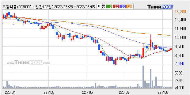 부광약품은 2021년 매출액 1825억원과 영업이익 56억원을 기록했다. 전년대비 매출은 7.6%, 영업이익은 39.5% 각각 상승했다. 이 회사의 매출액 증감률과 영업이익 증감률은 각각 코스피 하위 35%, 상위 43%에 해당된다.