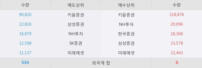 거래원 동향은 NH투자, 삼성증권, 미래에셋 등이 매수 상위 목록에 나타나고 있다.