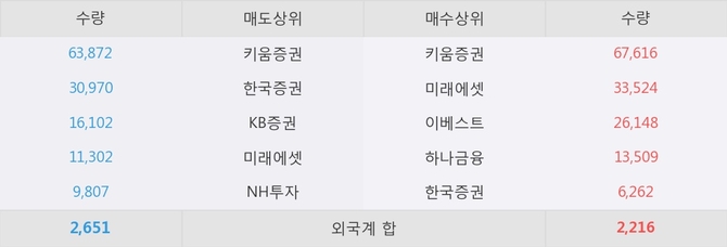 거래원 동향은 미래에셋, 하나금융 등이 매수 상위 목록에 나타나고 있다.
