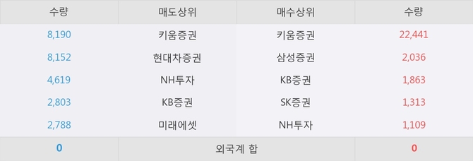 거래원 동향은 삼성증권, NH투자 등이 매수 상위 목록에 나타나고 있다.