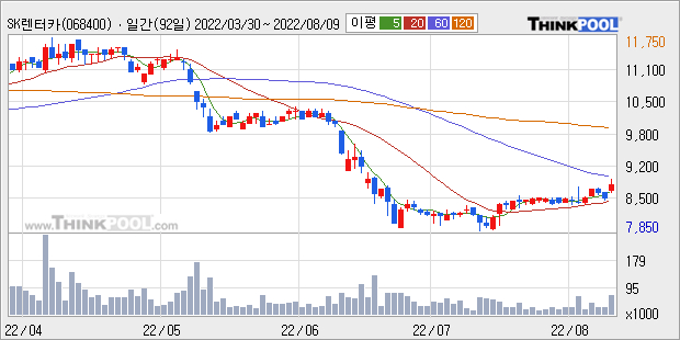 SK렌터카의 2021년 매출액은 1조 369억으로 전년대비 20.1% 상승했고, 영업이익 또한 790억으로 전년대비 11.7% 상승했다. 이 회사의 매출액 증감률과 영업이익 증감률은 각각 코스피 상위 35%, 하위 45%에 해당된다.