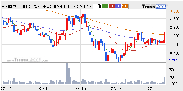원방테크의 2021년 매출액은 전년대비 -4.8% 줄어든 3111억원이고, 영업이익 역시 전년대비 -36.7% 줄어든 137억원을 기록했다. 이 회사의 매출액 증감률과 영업이익 증감률은 각각 코스닥 하위 20%, 하위 27%에 해당된다.