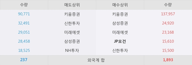 거래원 동향은 JP모건, 삼성증권, 미래에셋 등이 매수 상위 목록에 나타나고 있다.