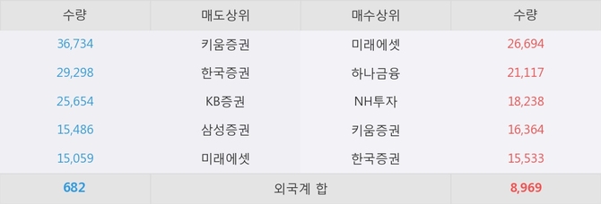 거래원 동향은 미래에셋, 하나금융, NH투자 등이 매수 상위 목록에 나타나고 있다.