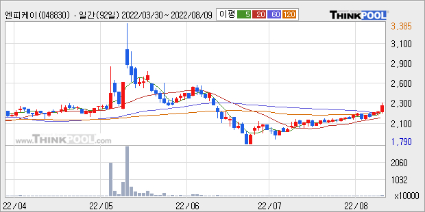 엔피케이의 2021년 매출액은 전년대비 4.8% 늘어난 646억원이고, 영업이익 또한 전년대비 362.7% 늘어난 24억원을 기록했다. 이 회사의 매출액 증감률과 영업이익 증감률은 각각 코스닥 하위 34%, 상위 7%에 해당된다.