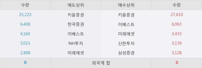 아직까지 외국계 증권사 창구를 통한 매매는 발생하지 않고 있다. 그리고 이 시간 이베스트가 매수창구상위에 올라있는 종목은 이 종목 이외에도 엔피케이, 대신정보통신 등이 있다.