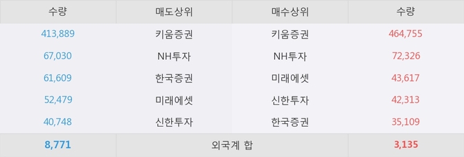 거래원 동향은 NH투자, 미래에셋 등이 매수 상위 목록에 나타나고 있다.