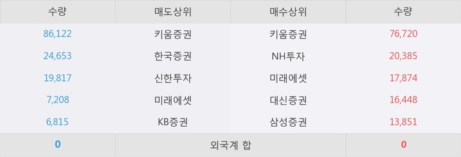거래원 동향은 NH투자, 미래에셋, 삼성증권 등이 매수 상위 목록에 나타나고 있다.