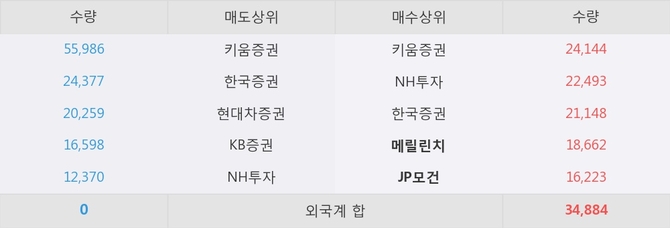 거래원 동향은 메릴린치, JP모건, NH투자 등이 매수 상위 목록에 위치하고 있다.