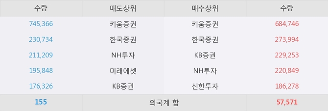 이 시각 주요 거래원은 NH투자, 키움증권, 한국증권 등이 매수 상위 창구에 자리하고 있다.