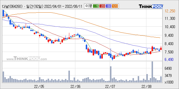 다날의 2021년 매출액은 전년대비 24.5% 늘어난 2856억원이고, 영업이익 또한 전년대비 6.6% 늘어난 160억원을 기록했다. 이 회사의 매출액 증감률과 영업이익 증감률은 각각 코스닥 상위 33%, 하위 44%에 해당된다.