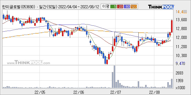 추세선으로 보면 현재 단기·중기 이평선이 정배열 상태로 전형적인 상승세를 보이고 있다.