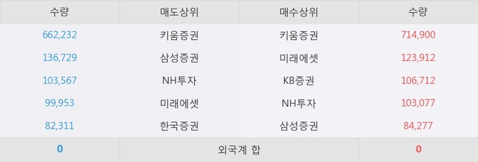 거래원 동향은 미래에셋, NH투자, 삼성증권 등이 매수 상위 목록에 나타나고 있다.
