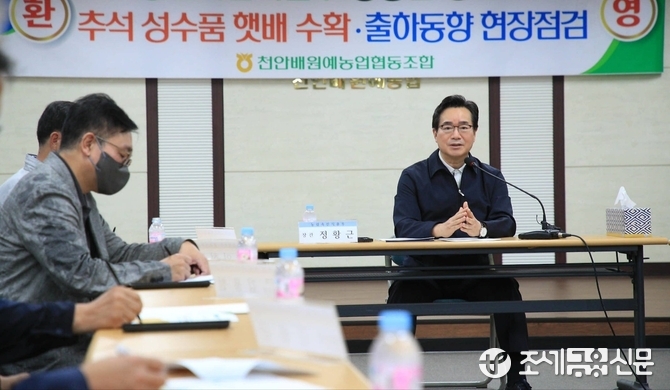 정 장관은 "추석이 임박한 시기인 만큼 태풍 등 재해 대비에 만전을 기하고 공급에 차질이 없도록 수확, 선별, 포장 등을 세삼하게 살펴달라"고 당부했다.