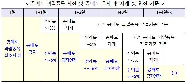 기존에는 공매도 금지일 해당 종목의 주가 하락률이 높아도 다음 영업일에 공매도가 재개되는 문제가 있었다.