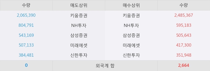 거래원 동향은 NH투자, 삼성증권, 미래에셋 등이 매수 상위 목록에 나타나고 있다.