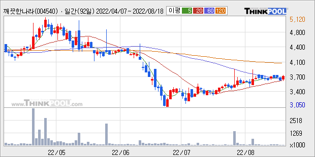 깨끗한나라는 2021년 매출액 5787억원과 영업이익 130억원을 기록했다. 전년대비 매출은 -2.2%, 영업이익은 -75.0% 각각 하락했다. 이 회사의 매출액 증감률과 영업이익 증감률은 각각 코스피 하위 17%, 하위 12%에 해당된다.