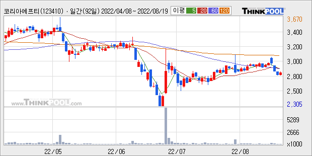 일봉 차트의 모습은 단기 이평선이 역배열을 만들며 조정을 받다가 다시 상승으로 돌아선 모습이다. 이 종목의 차트에서 최근에 최근 60일 매물대 돌파, 주가 5MA 상향돌파 등을 확인할 수 있다