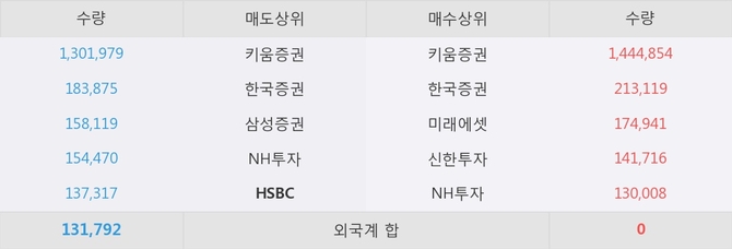 거래원 동향은 미래에셋, NH투자 등이 매수 상위 목록에 나타나고 있다. 한편, 매도 창구 상위에는 HSBC이 눈에 띄고 있다.