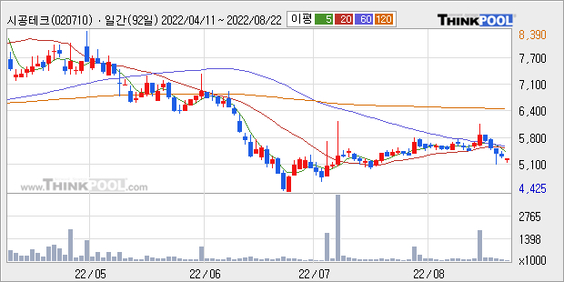 시공테크의 2021년 매출액은 926억으로 전년대비 -10.7% 하락했고, 영업이익은 -10억으로 적자전환했다. 이 회사의 매출액 증감률과 영업이익 증감률은 각각 코스닥 하위 15%, 하위 14%에 해당된다.