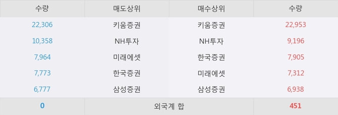 거래원 동향은 NH투자, 미래에셋, 삼성증권 등이 매수 상위 목록에 나타나고 있다.