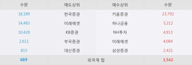 이 시각 주요 거래원은 미래에셋, 한국증권, KB증권 등이 매도 상위 창구에 자리하고 있다.