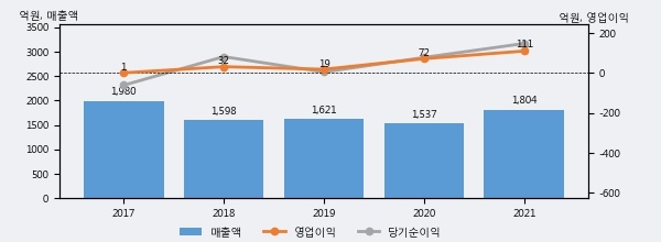 SBS콘텐츠허브의 2021년 매출액은 1804억으로 전년대비 17.3% 상승했고, 영업이익 또한 111억으로 전년대비 52.9% 상승했다. 이 회사의 매출액 증감률과 영업이익 증감률은 각각 코스닥 상위 43%, 상위 36%에 해당된다.