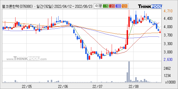 웰크론한텍의 2021년 매출액은 2692억으로 전년대비 33.8% 상승했고, 영업이익은 -2억으로 적자전환했다. 이 회사의 매출액 증감률과 영업이익 증감률은 각각 코스닥 상위 23%, 하위 15%에 해당된다.
