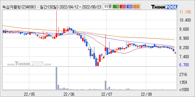 녹십자웰빙의 2021년 매출액은 전년대비 20.3% 늘어난 910억원이고, 영업이익 또한 전년대비 234.9% 늘어난 78억원을 기록했다. 이 회사의 매출액 증감률과 영업이익 증감률은 각각 코스닥 상위 38%, 상위 11%에 해당된다.
